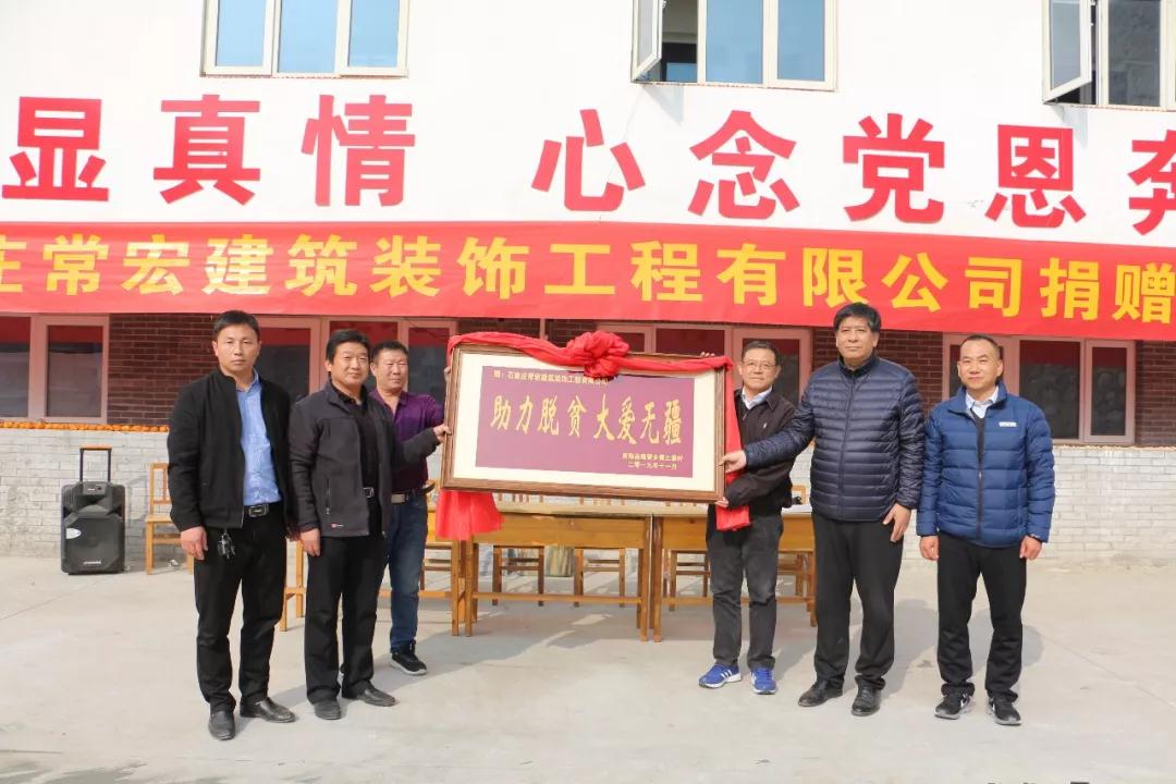 2019年11月9日,靈壽縣南營鄉(xiāng)黃土梁村迎接了初冬的寒意,但清晨的山路,卻承載著常宏的溫暖。為積極響中央號召,深入貫徹"千企幫千村"精準(zhǔn)扶貧活動,石家莊市新華區(qū)發(fā)展改革局?jǐn)y手常宏建筑裝飾工程有限公司為河北省扶貧開發(fā)工作重點(diǎn)村——黃土梁村獻(xiàn)上一份愛心,向黃土梁村捐贈9萬元,用于新民居文化廣場建設(shè)。新華區(qū)發(fā)改局局長焦志信、南營鄉(xiāng)黨委書記胡延衛(wèi)、發(fā)改局副局長李霞,常宏董事總經(jīng)理王躍以及新華區(qū)發(fā)改局駐村工作組、南營鄉(xiāng)黃土梁村雙委干部等出席捐贈儀式。