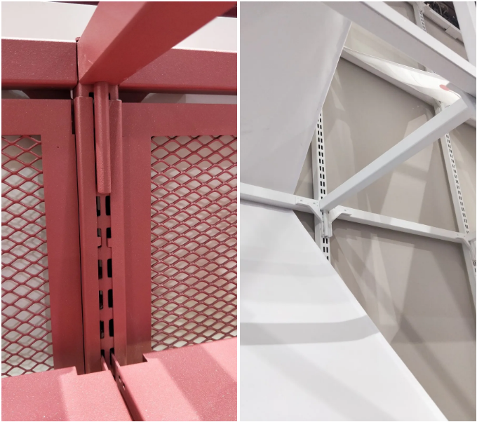 1、道具采用標(biāo)準(zhǔn)化設(shè)計(jì)、模塊化組合,具備拆裝組合的能力,無(wú)論什么尺度的道具一定是分體組合的。而且鋼立柱的種類繁多,結(jié)合各類支架、層板和不同的顏色噴涂組合而成形式多樣的道具。
