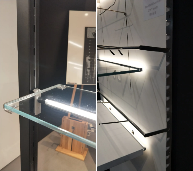 2、道具與照明結(jié)合緊密,進(jìn)行了一體化設(shè)計(jì)。無(wú)論是線條燈還是射燈,都采用獨(dú)立線路,觸點(diǎn)式接觸。