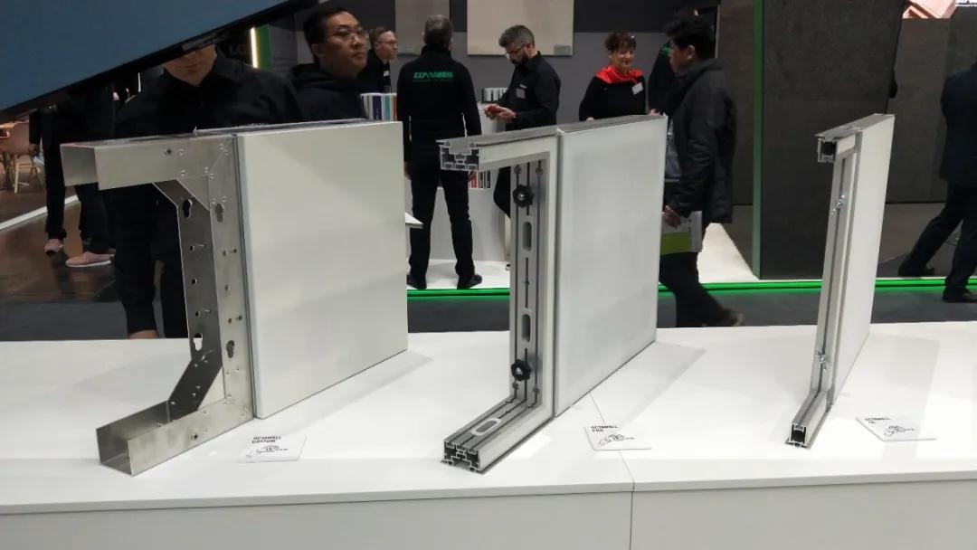 還有一款是今年新推出的墻板,厚度80毫米。面板可以是拉布,也可以是硬質(zhì)板,同時(shí)可以集成各類顯示設(shè)備和燈箱。