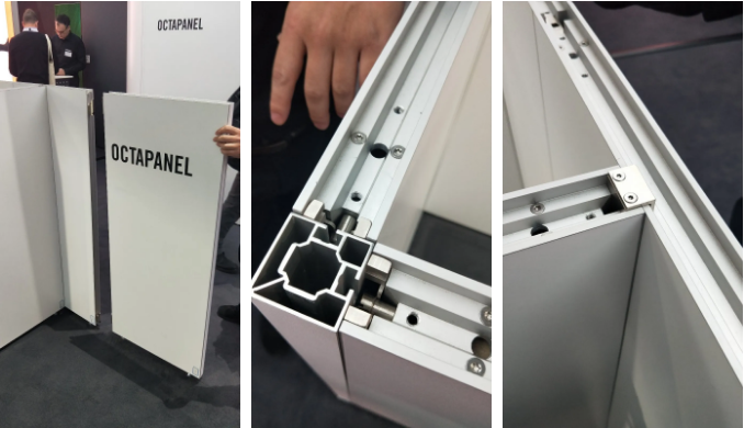 奧克坦姆的快裝墻板,厚度40毫米,高度2400毫米,最高可以做到4800毫米(即兩塊板豎向排列)。這款產(chǎn)品可以快速建立隔斷墻體,同時(shí)方便拆卸。它適合展會(huì)搭建和建立各類準(zhǔn)永久性隔斷。