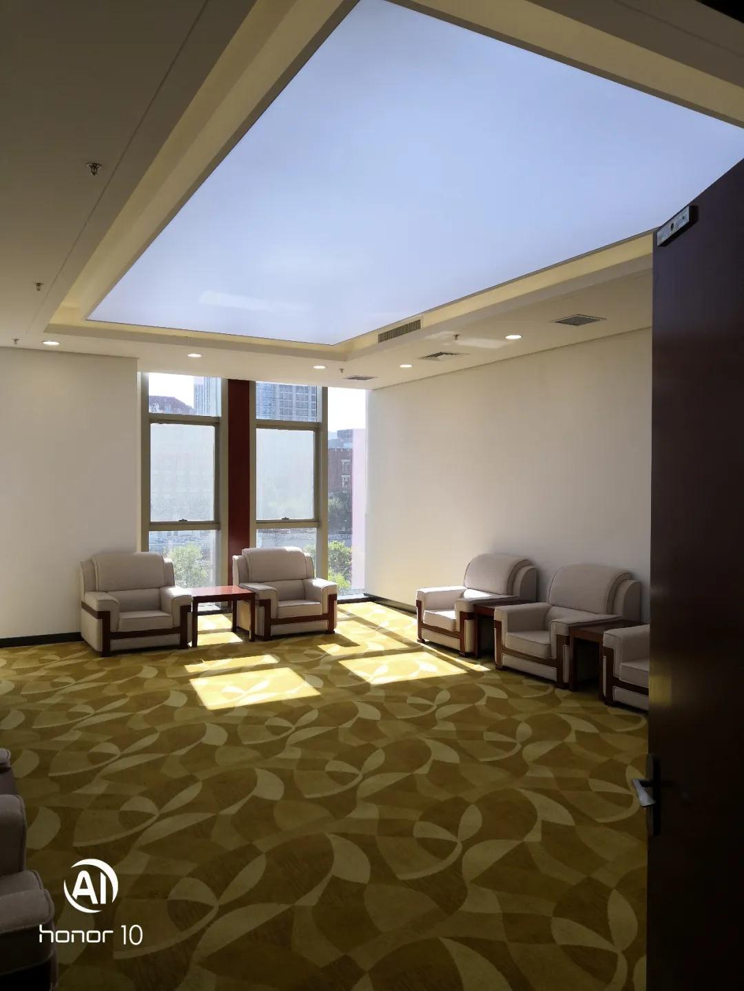 該項目室內(nèi)吊頂排版合理,燈具、煙感器、風口位置居中美觀。走廊吊頂與墻面交接采用凹槽縮縫處理,防止裂縫發(fā)生。