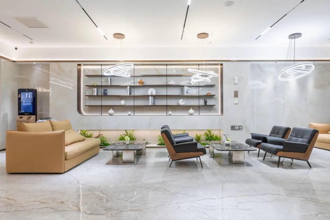 主材:巖板、淺木色飾面板、仿壁布快裝墻板、不銹鋼等